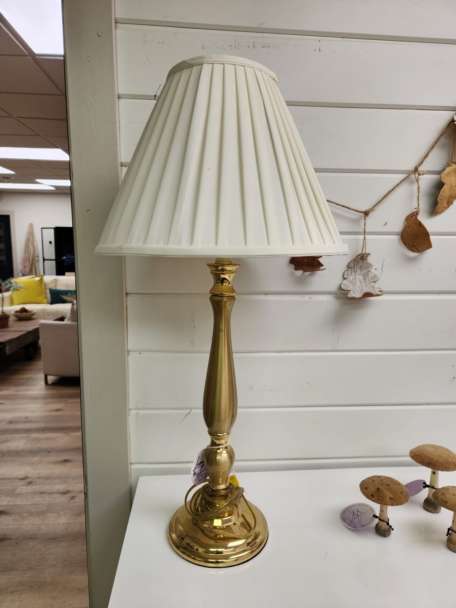 Brighten up your space with this beautiful shiny golden table lamp! Not only will it provide light, but it's sleek and smooth body will give your space an elegant look.