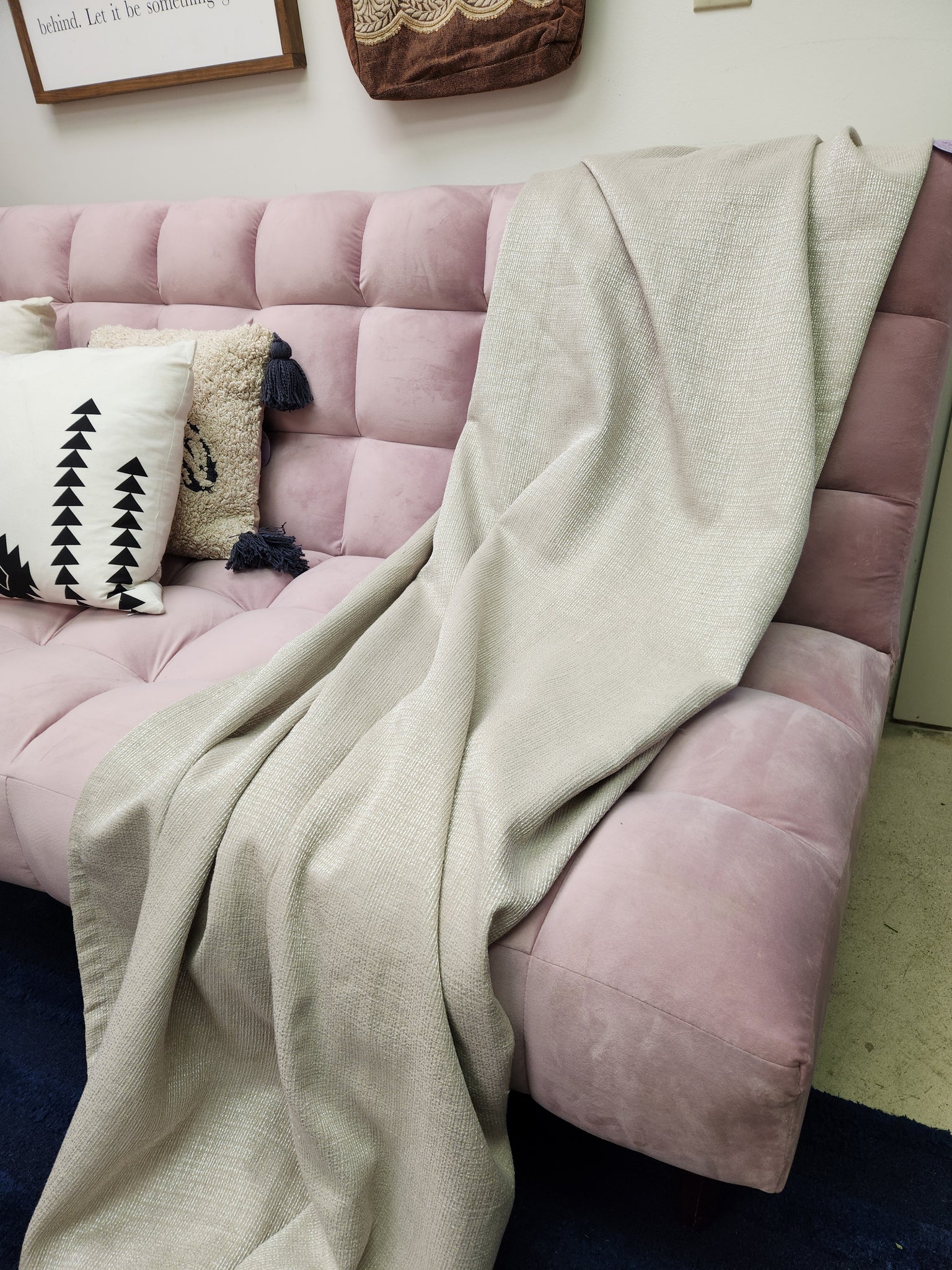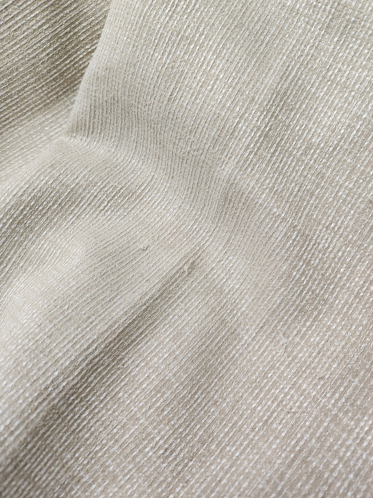 This blanket has been used in staging. There are some loose threads around the blanket.