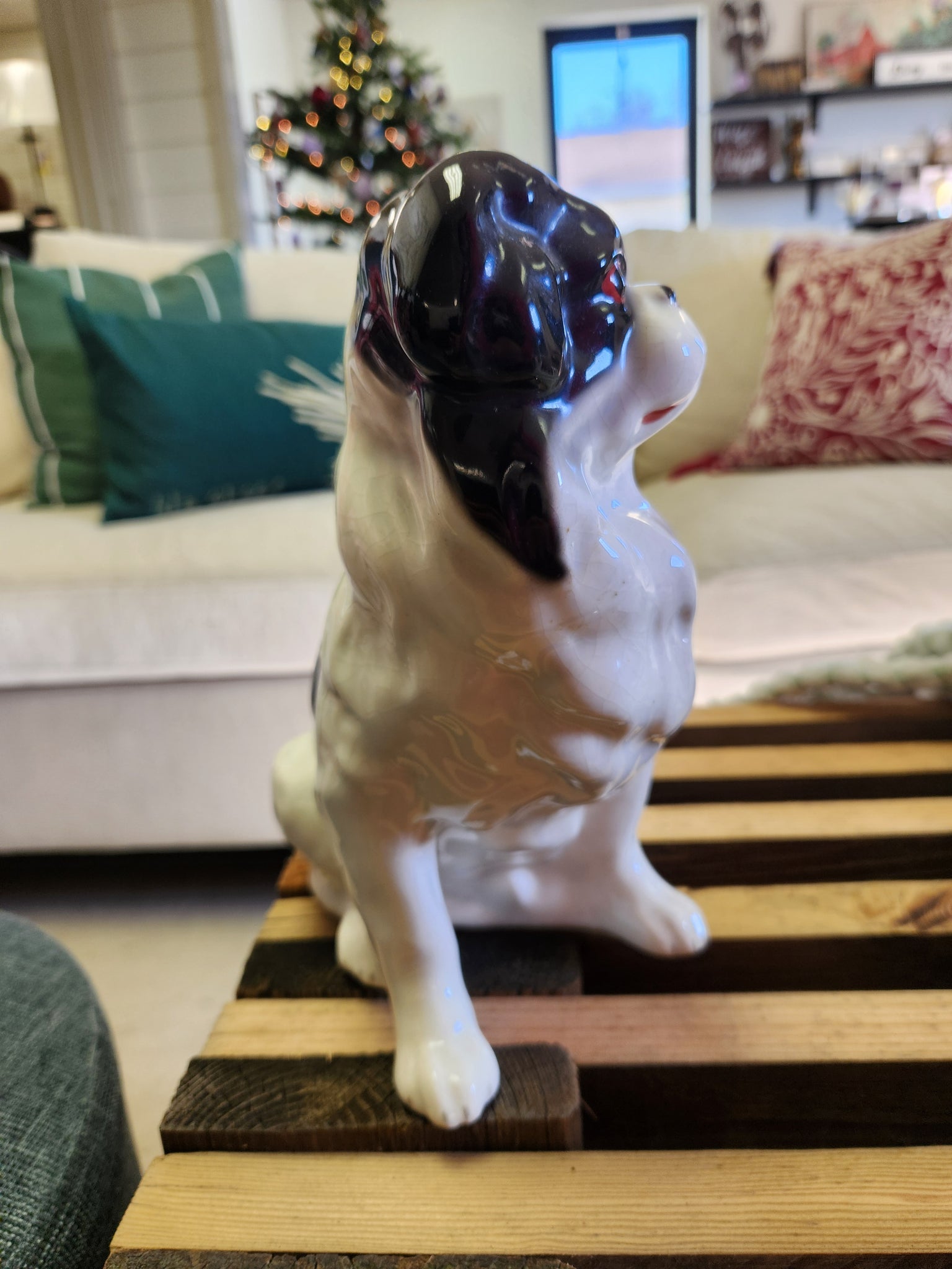 This adorable porcelain dog is ready for its new home! Having been previously loved, it bears a few marks from over time. This adorable pup makes a great gift for the dog lover in your life. Bring him home today!