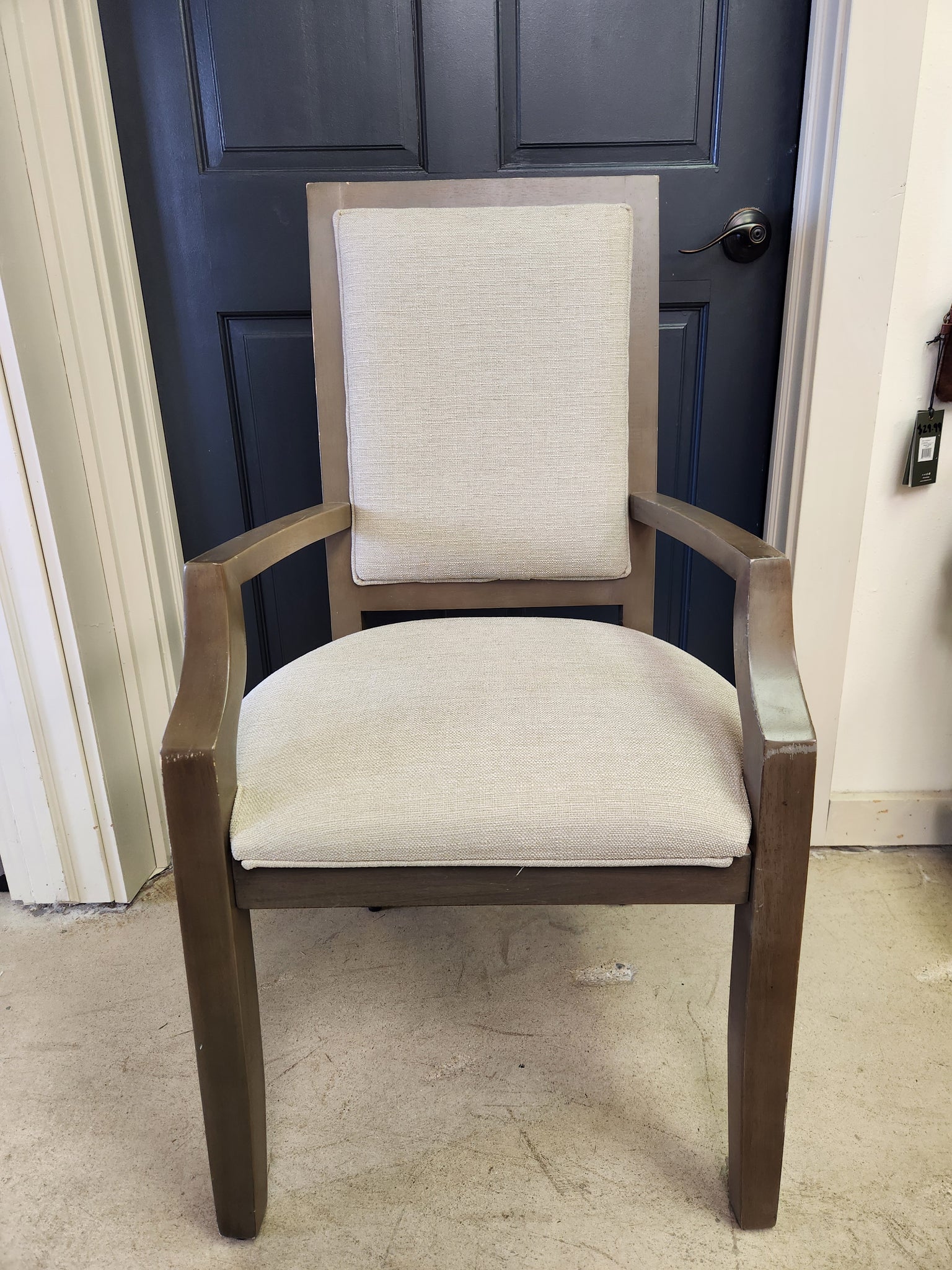 Wood Dining Chair w/ White Seat Cushion