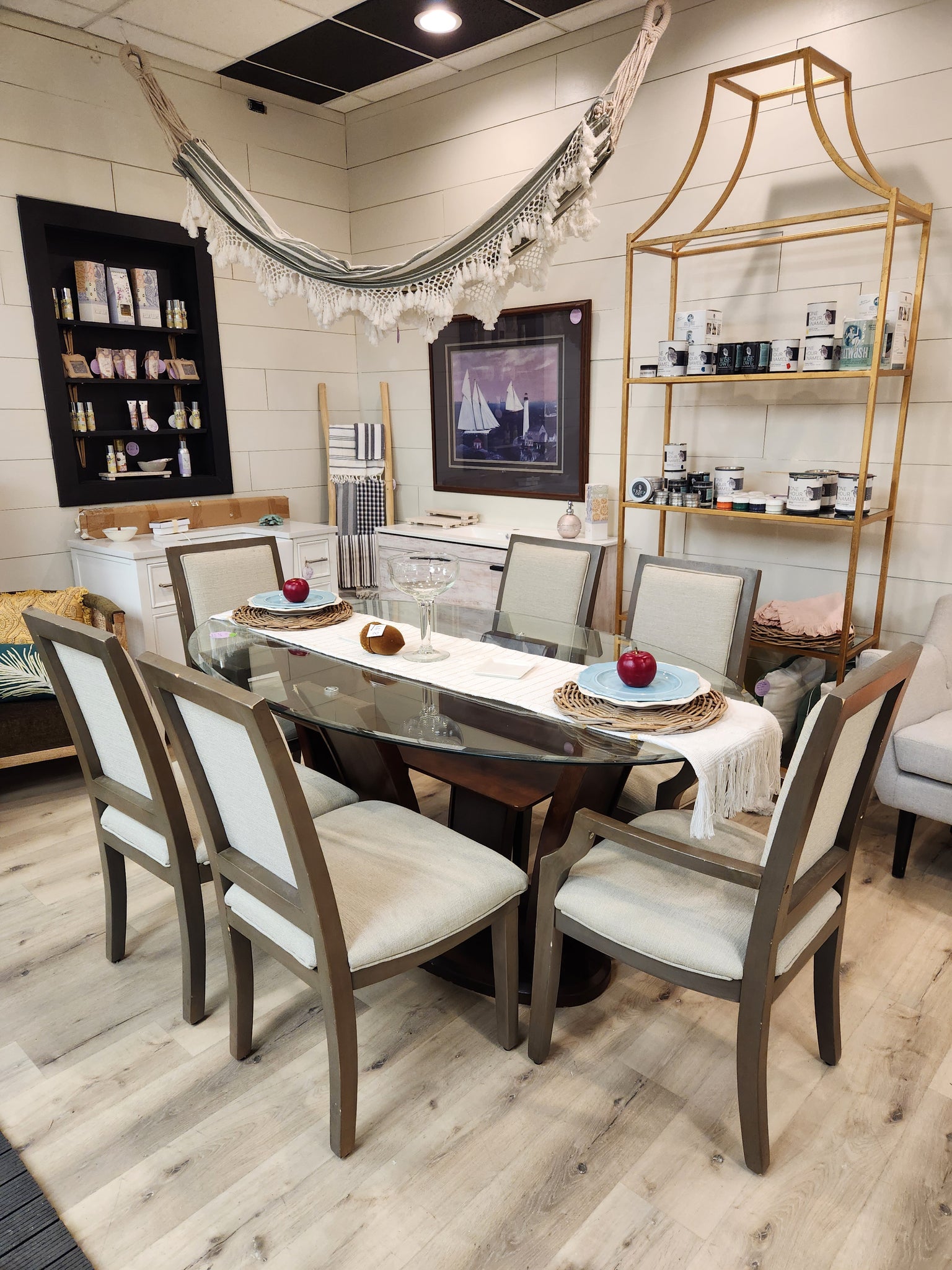 CLEARANCE Manhattan Wooden Oval Glass Top Dining Table