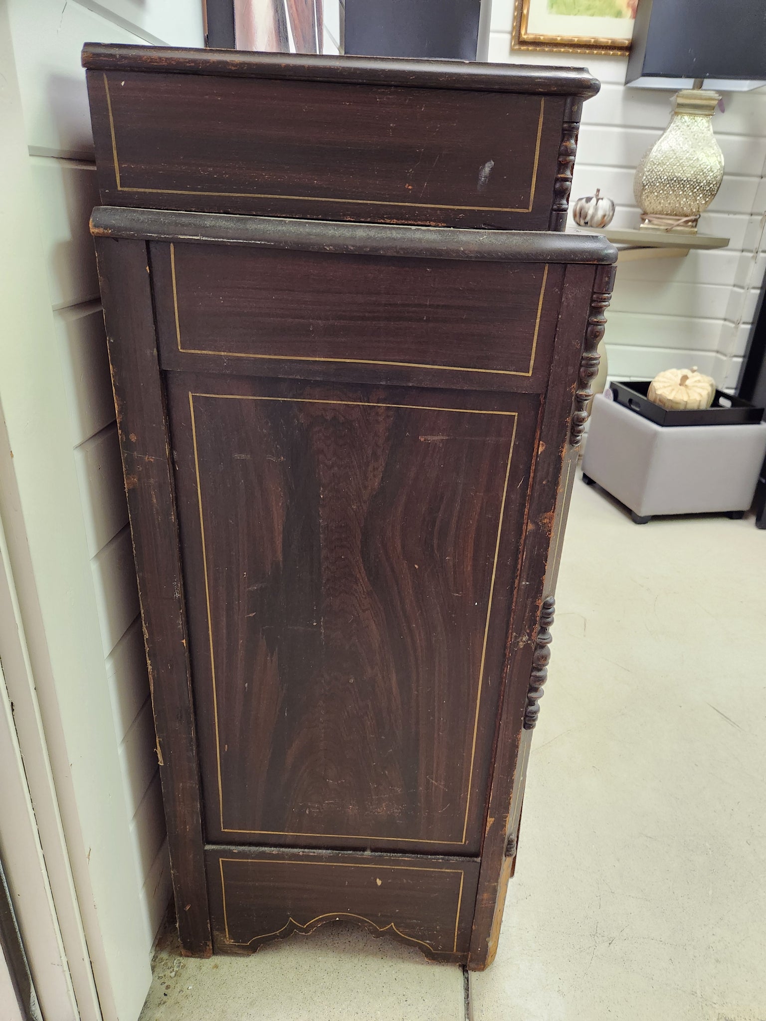 Indulge in the timeless elegance of this Vintage Wooden Dresser & Side Table Set. Crafted with intricate details reminiscent of 18th century Italy, this set exudes charm and sophistication. Despite its years, it remains in good condition, making it a unique addition to any home. Capture the allure of the past with this vintage set.