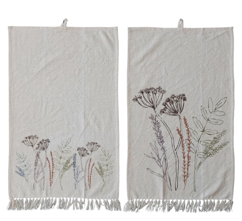 Cotton Printed Kitchen Towel With Flowers - Set of 2