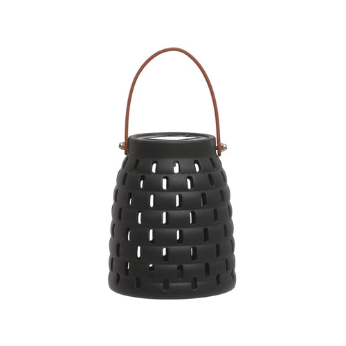 Black Stoneware LED Solar Powered Waterproof Lantern