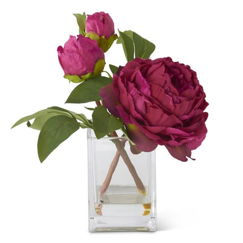 Purple Ranunculus Bouquet in Glass Vase w/ Faux Water