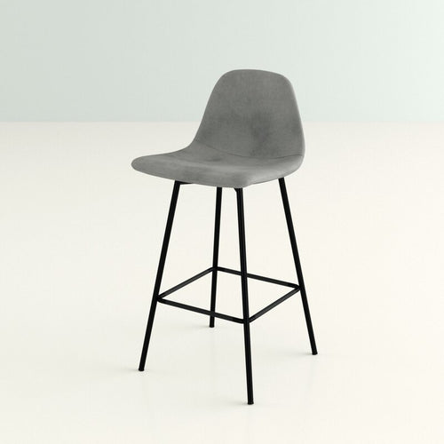 Gray Velvet Low Back Counter Height Bar Stool