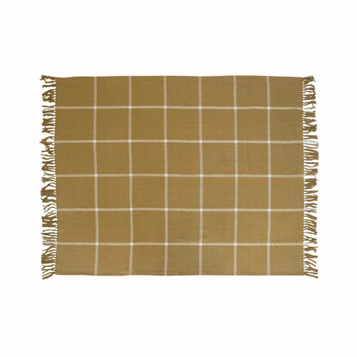 Cotton Flannel Throw Blanket with Grid Pattern and Fringe