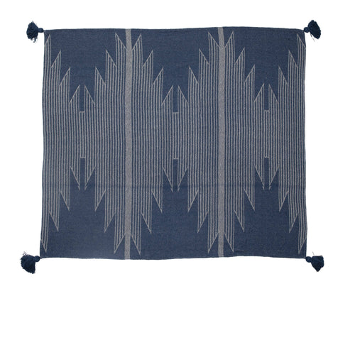 Blue Woven Throw Blanket with Aztec Pattern and Tassels