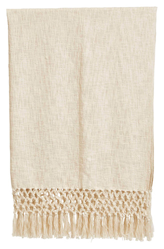 Coral Woven Cotton Slub Throw w/ Crochet & Tassels
